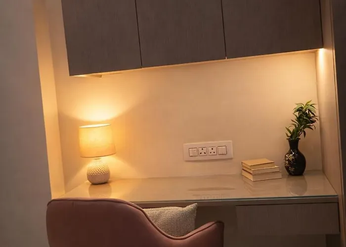 Luxury Private Studio Balcony Smart Tv Near City Center is furnished with a full kitchen for guests' convenience. The apartment is 15 minutes by car from Jaipur airport.
